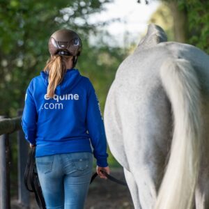 Bedrukking: op de rug groot e-quine.com, vierkant logo op ene mouw, tekst e-quine.com op andere mouw.
